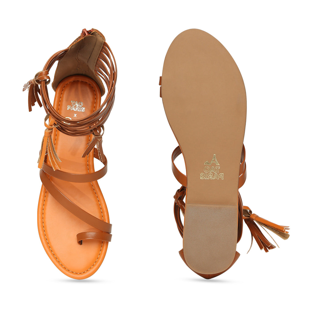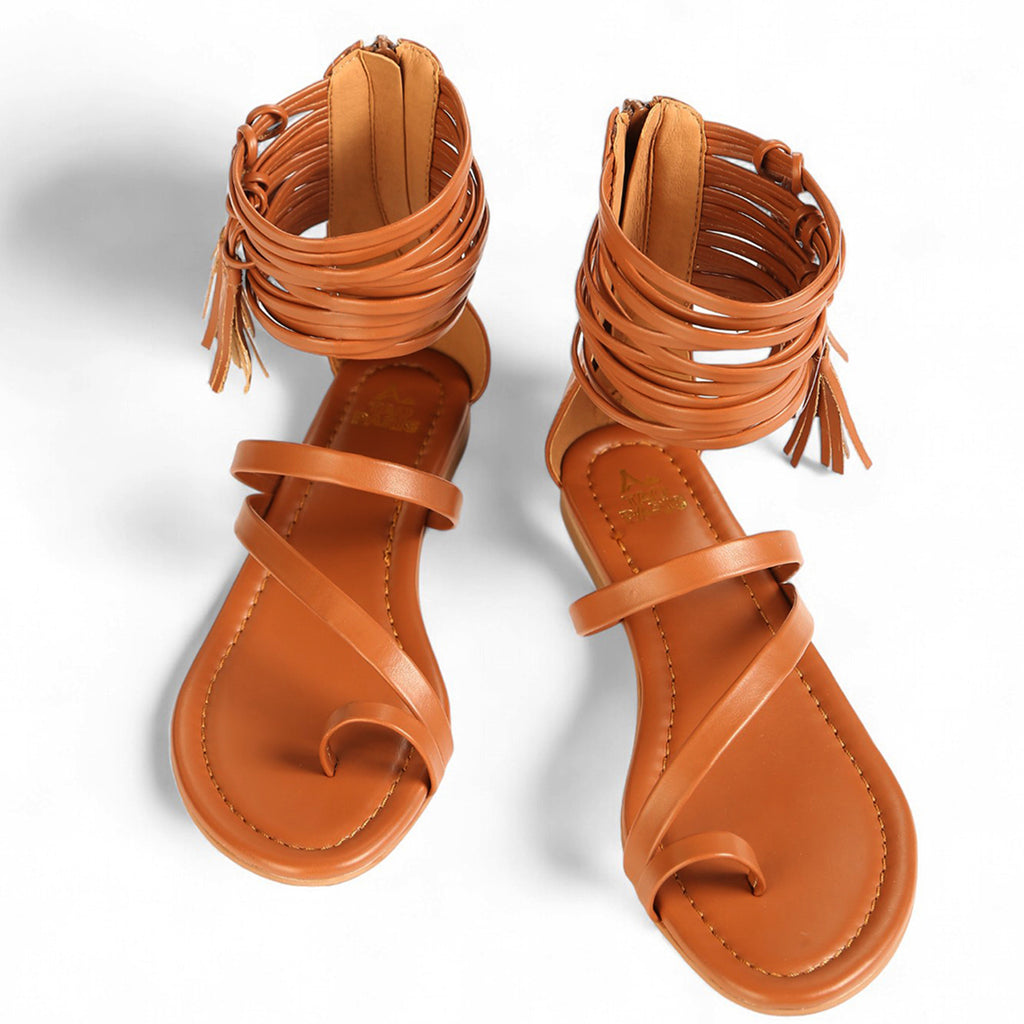 Strap into style with our Brown Gladiator Ankle length. The chic design showcases ankle-length allure, while the vibrant orange insock adds a pop of personality for a trendy look.