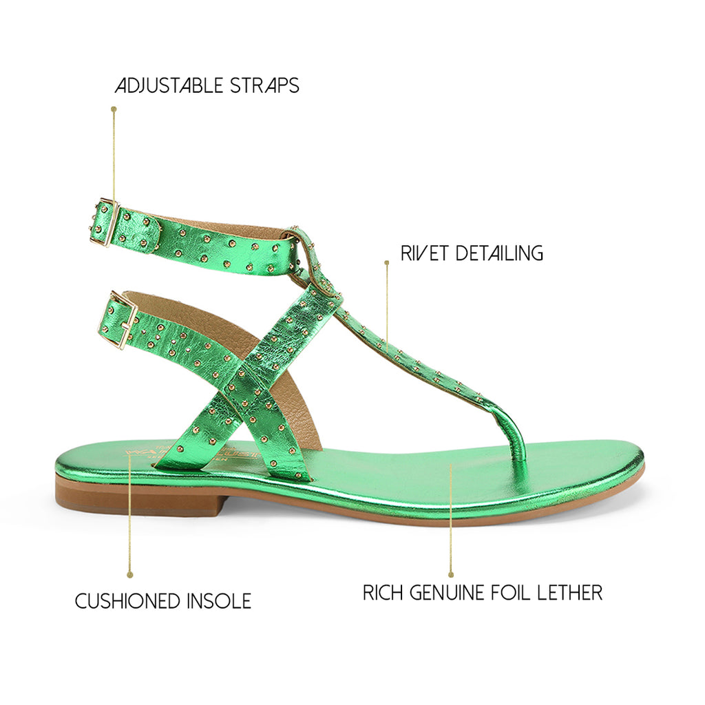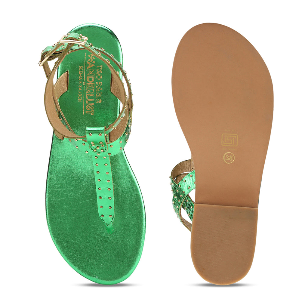 Step into luxury with our Green Rich Genuine Leather Footwear, featuring adjustable straps and distinctive rivet detailing. With a cushioned insole for all-day comfort and a 3-month warranty, this collection designed by celebrity fashion designer Seema K Sajdeh offers a perfect blend of opulence and functionality. These shoes are crafted to make a bold statement while ensuring lasting quality.