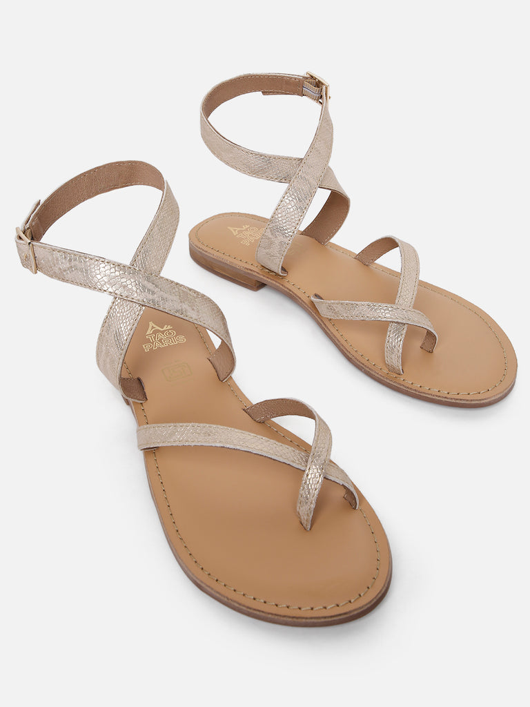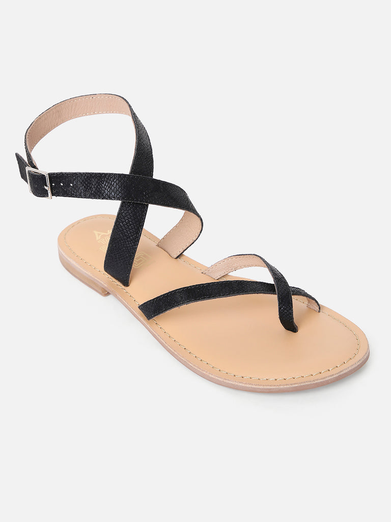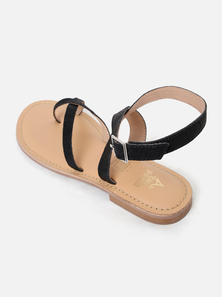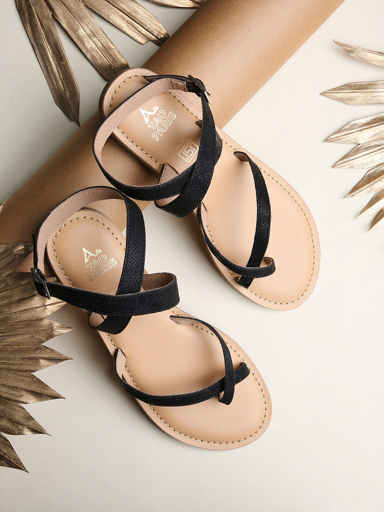 Discover sleek simplicity with the Tao Paris Women's Black Toe-Loop Flat Sandals. Designed with a modern minimalist aesthetic, these flats feature a soft footbed, slender toe-loop, and secure ankle strap in a chic metallic Black finish.