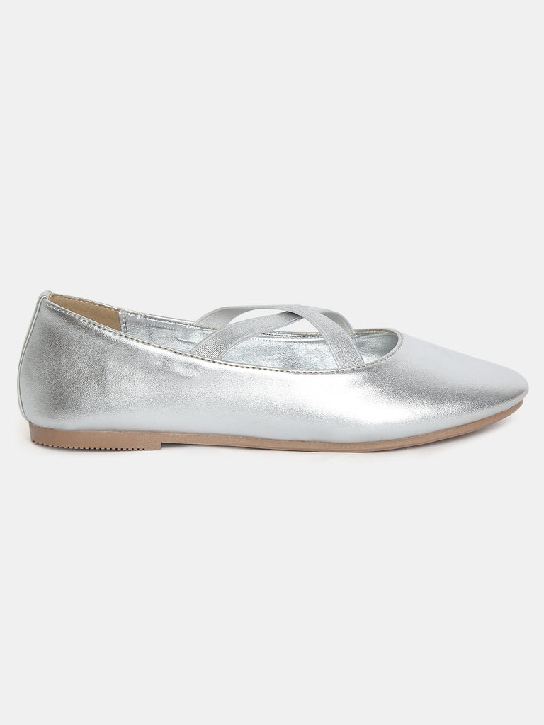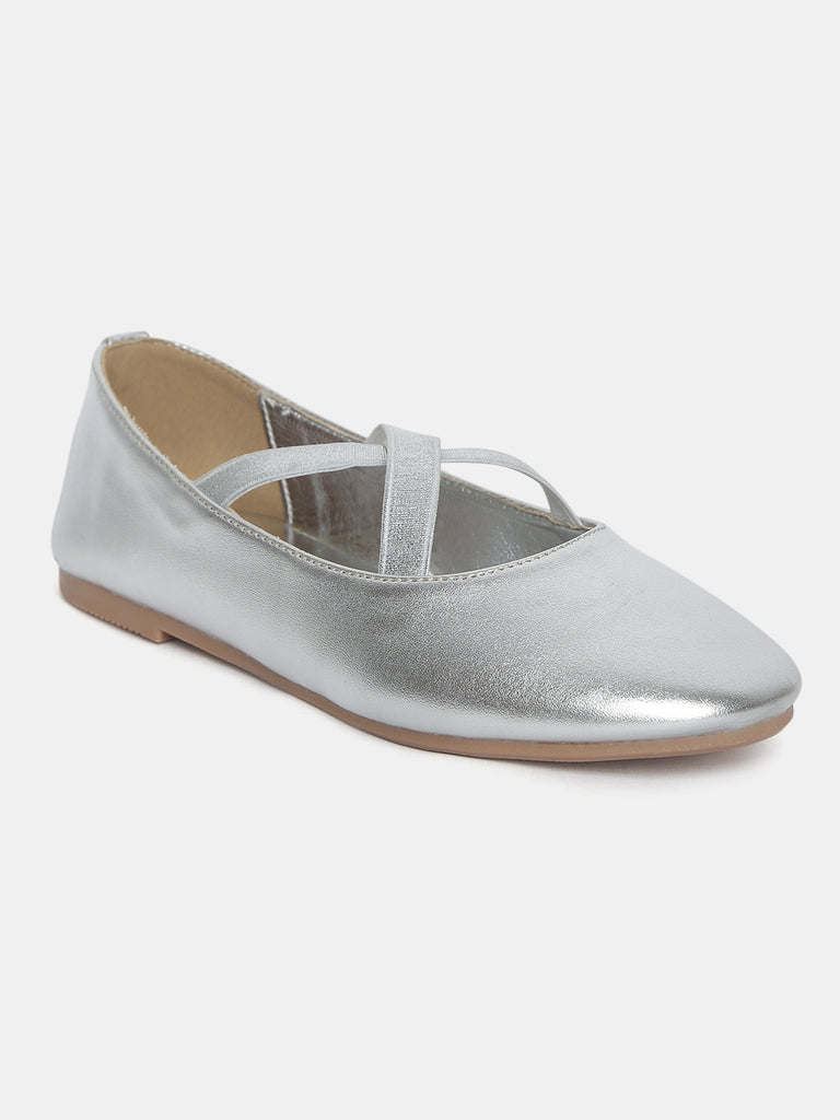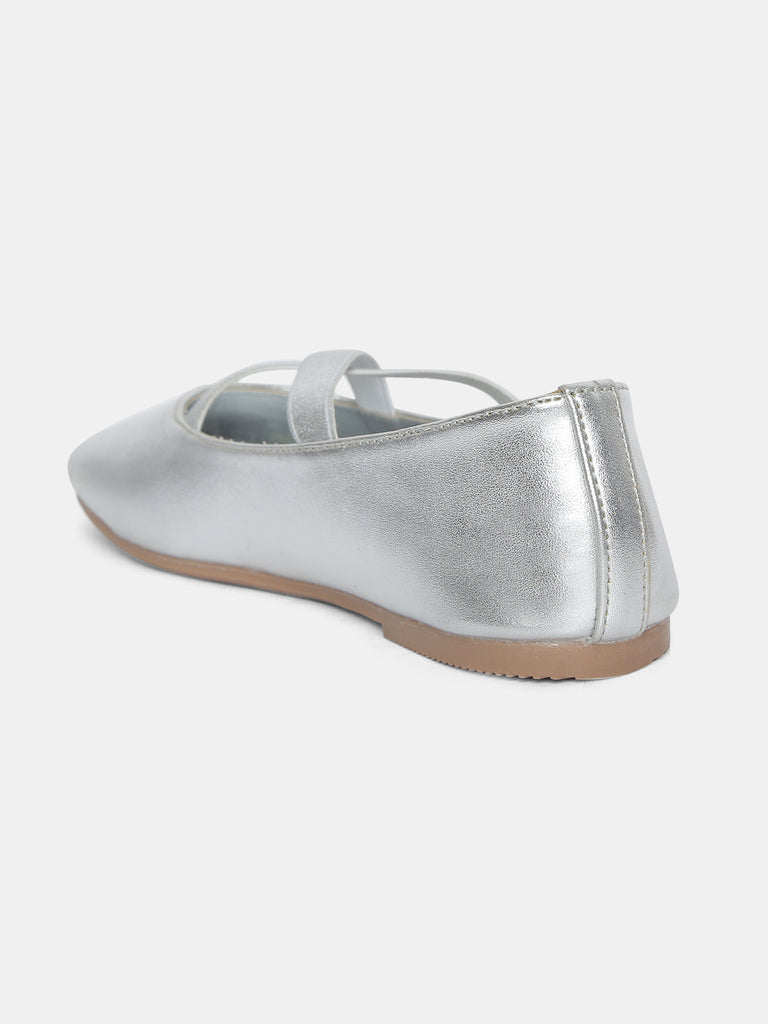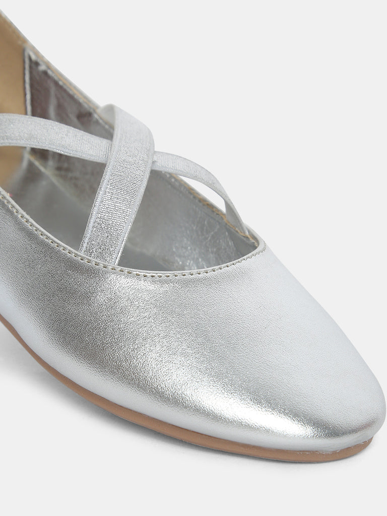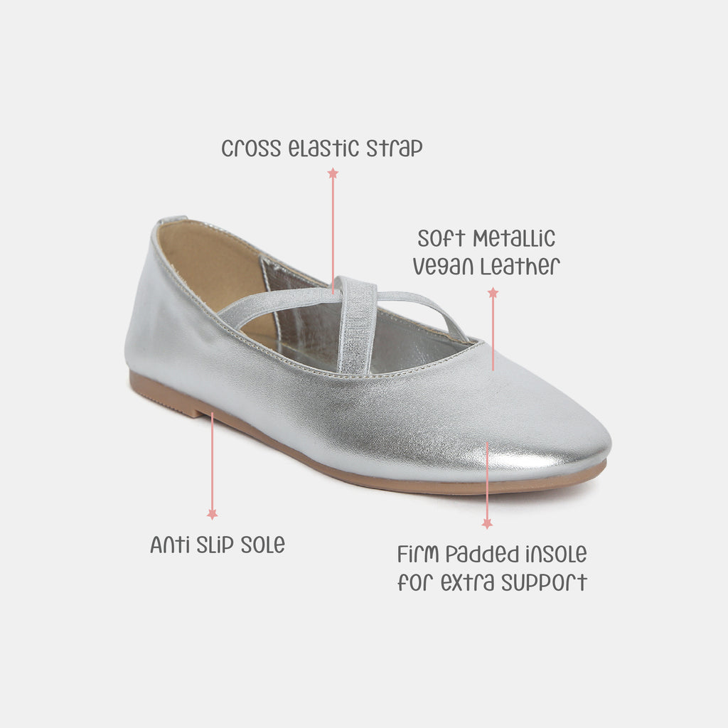 Silver Kids Ballerina Shoes | Soft Vegan Leather | Padded Insole | TPR Outsole | Cross Elastic Strap | Comfortable & Stylish Dance Shoes