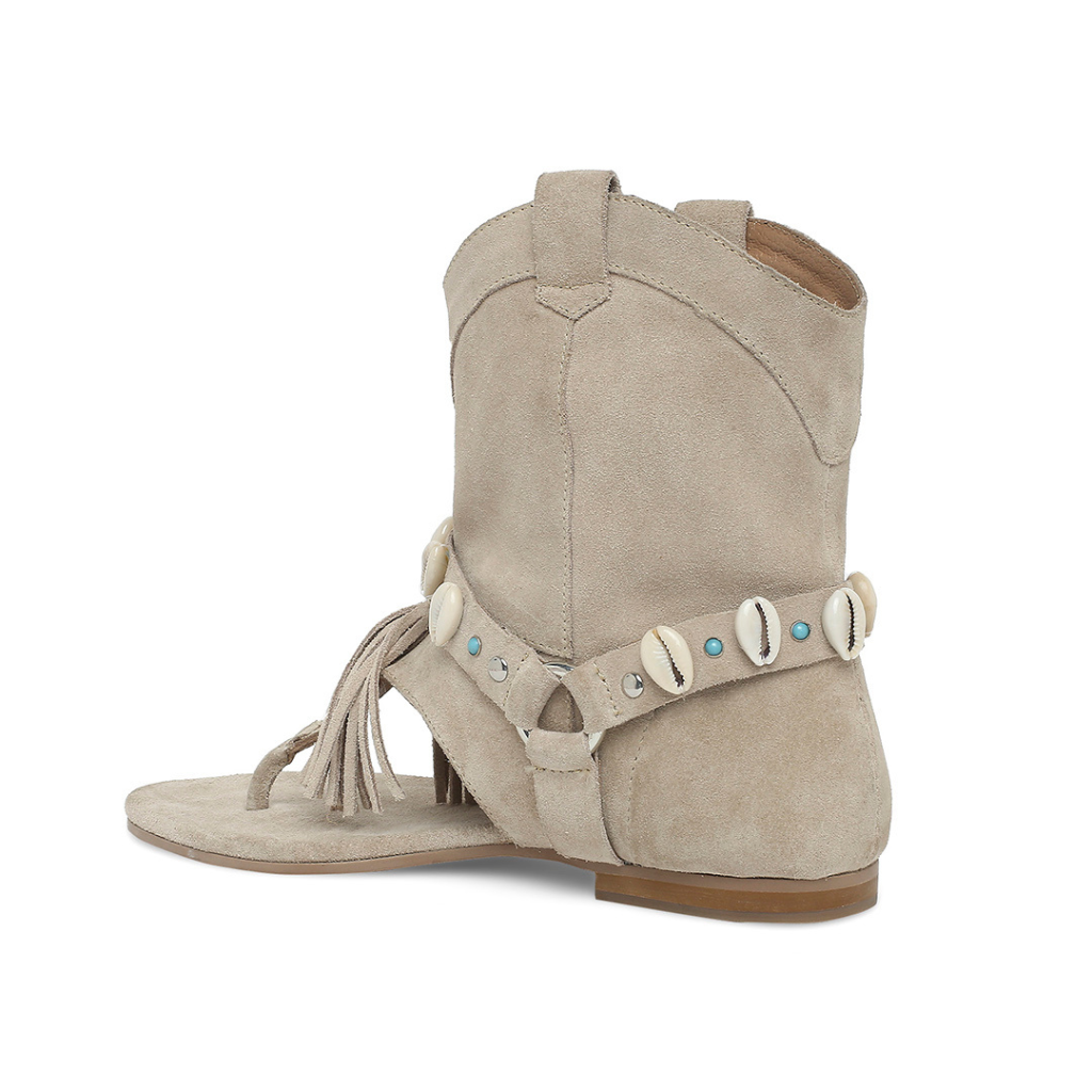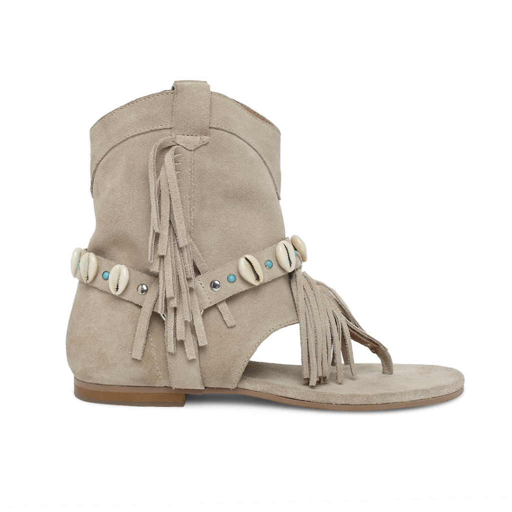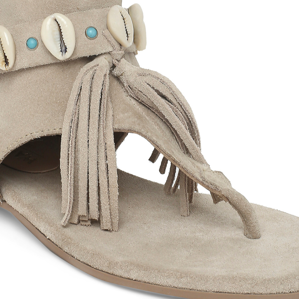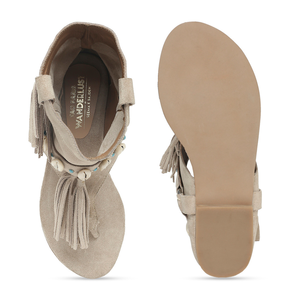 Indulge in the luxurious feel of our Genuine Suede Leather Footwear, featuring a cool ankle-length upper adorned with stylish stud and shell details. Designed by celebrity fashion designer Seema K Sajdeh, this collection combines comfort with fashion, offering a cushioned insole for all-day wear and a 3-month warranty for added assurance. These versatile shoes are the epitome of casual elegance, perfect for adding a boho-chic vibe to any outfit.