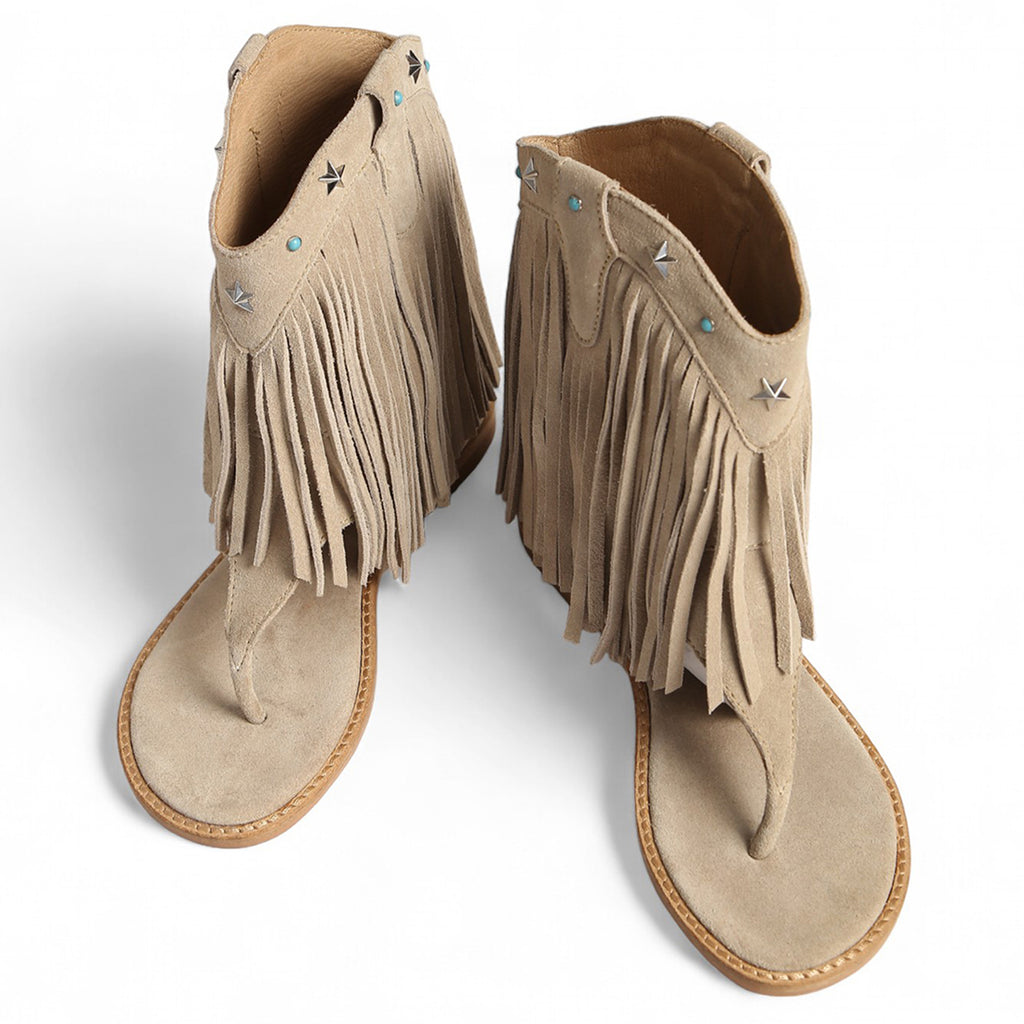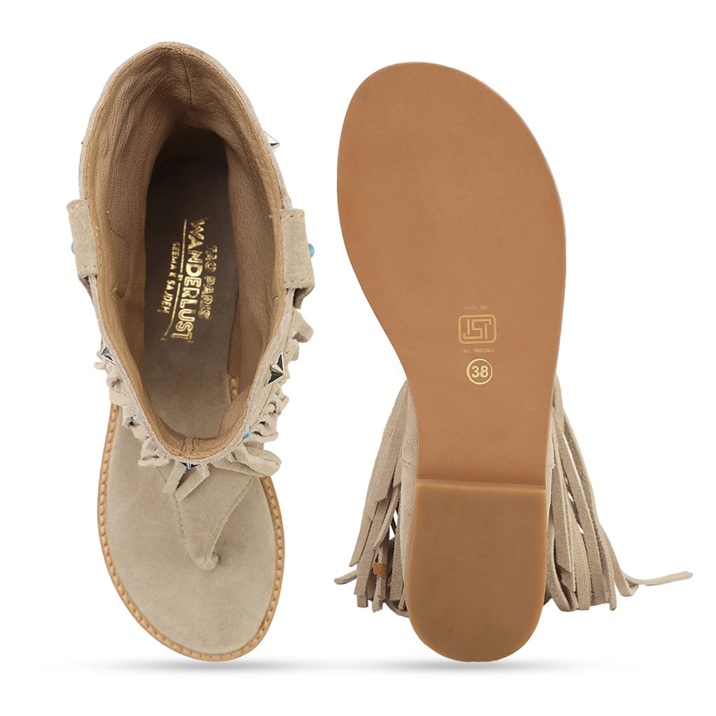 Indulge in the luxurious feel of our Genuine Suede Leather Footwear, featuring a cool ankle-length upper adorned with stylish stud and shell details. Designed by celebrity fashion designer Seema K Sajdeh, this collection combines comfort with fashion, offering a cushioned insole for all-day wear and a 3-month warranty for added assurance. These versatile shoes are the epitome of casual elegance, perfect for adding a boho-chic vibe to any outfit.