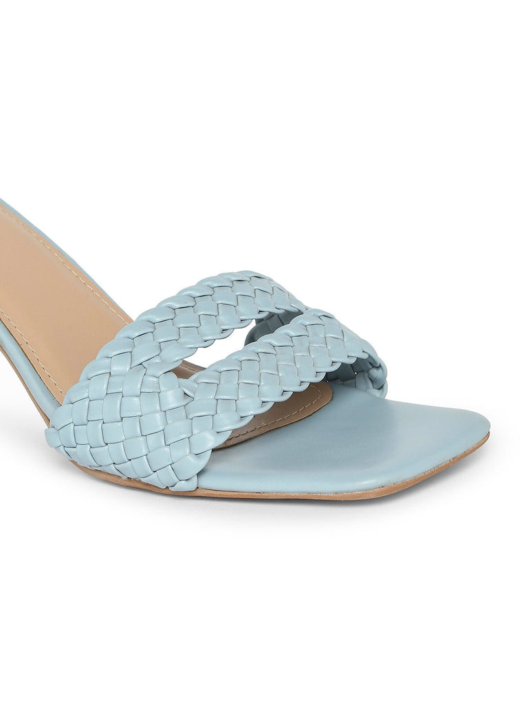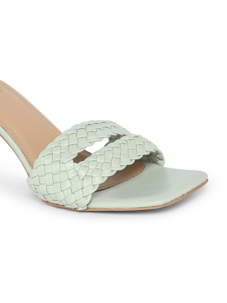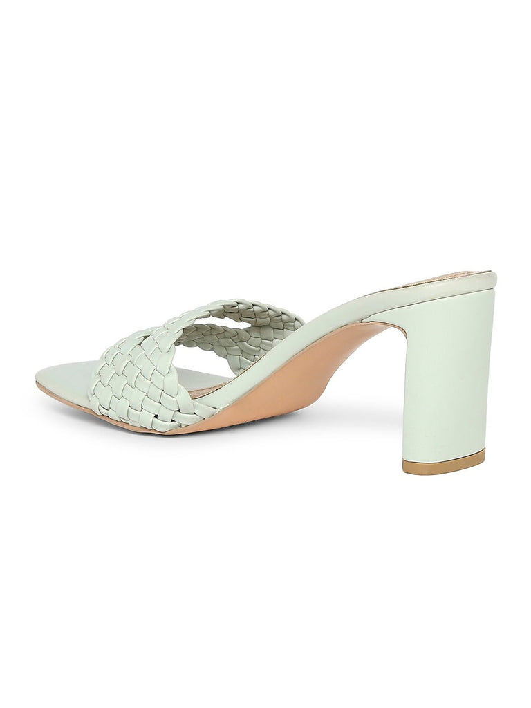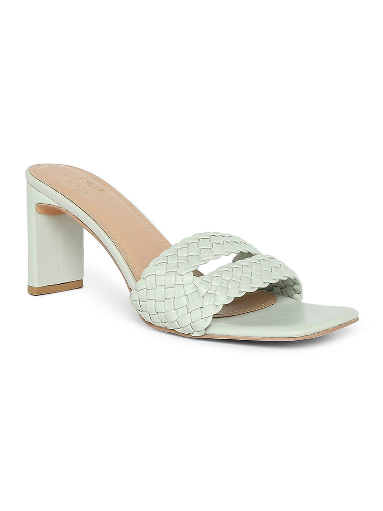 Amal, As pretty as a picture, the Amal heels are shoe-closet 'musts'. The strap features the popular crisscross weave and comes with an edgy slit in the middle that adds character to the design aesthetic of the pair. Dainty and comfortable heels with a square toe front make this pair ideal to be worn with Indian, western and Indo westerns. Also available in delicious pastel shades that you will absolutely love!