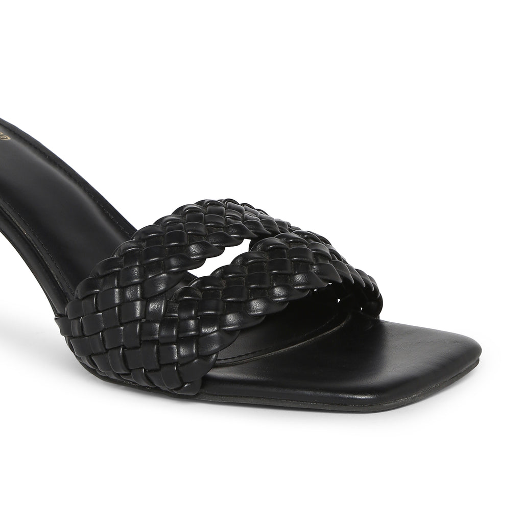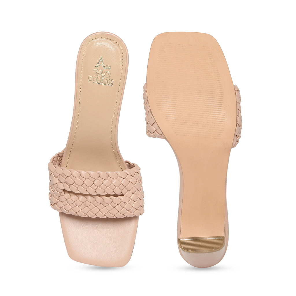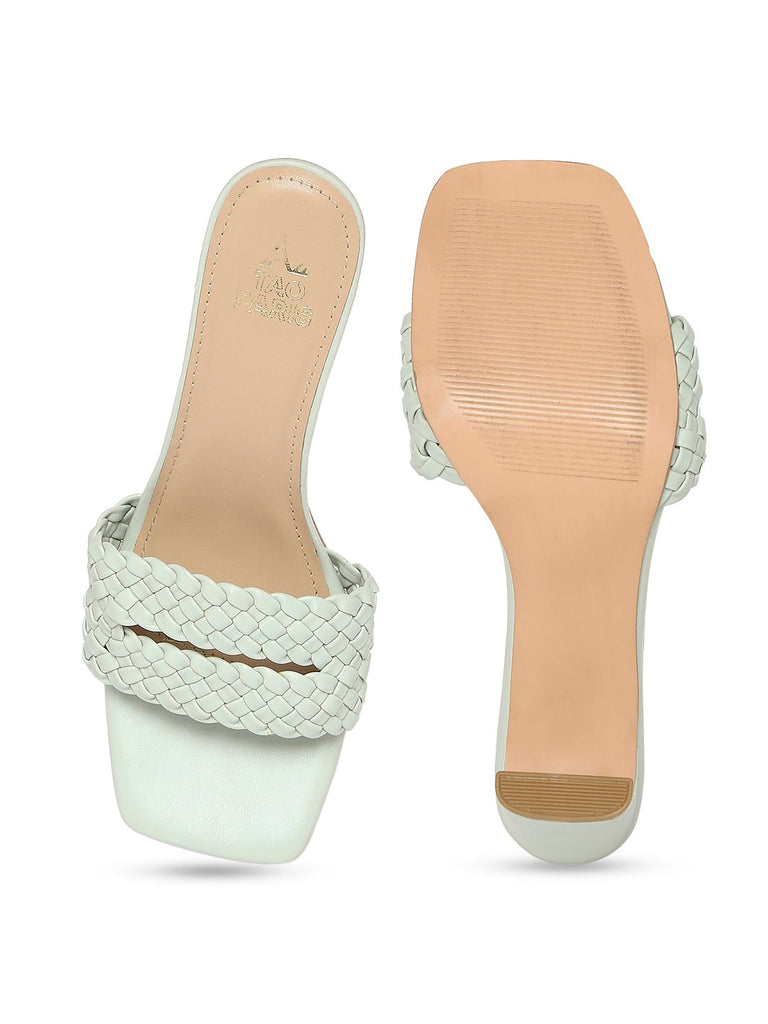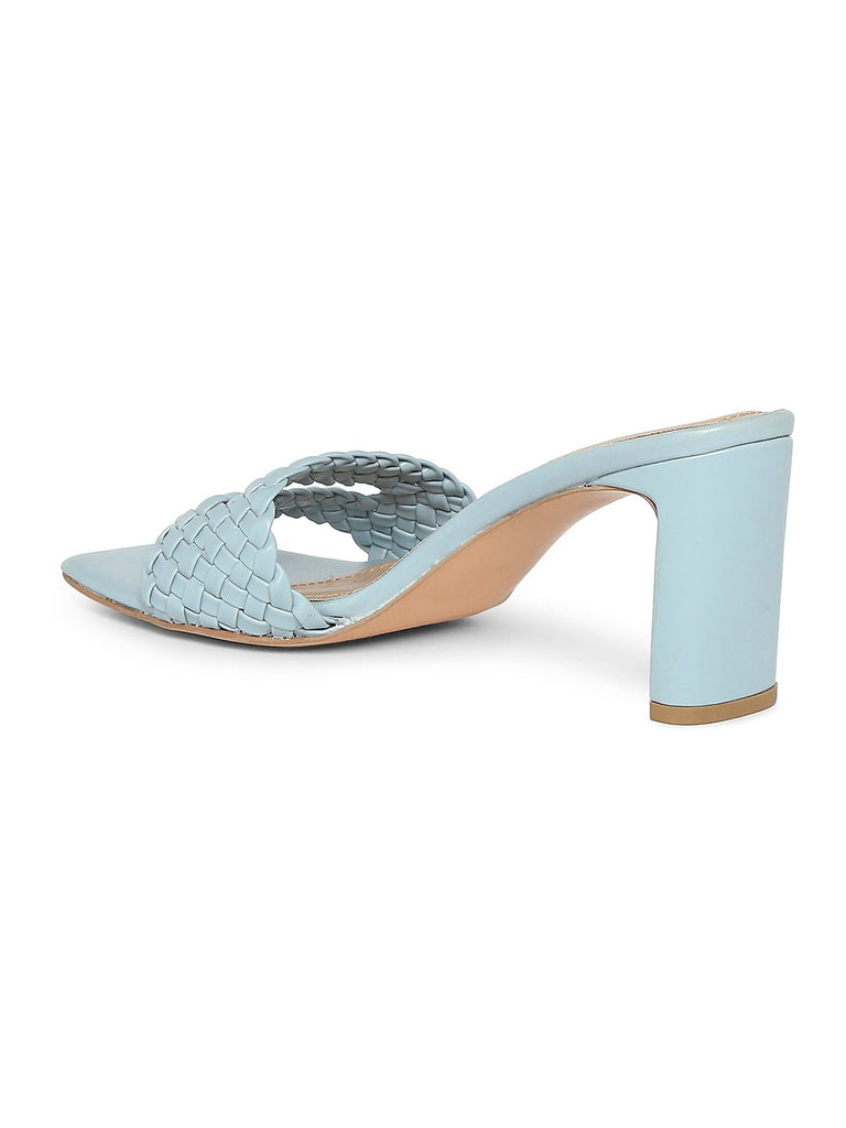 Amal, As pretty as a picture, the Amal heels are shoe-closet 'musts'. The strap features the popular crisscross weave and comes with an edgy slit in the middle that adds character to the design aesthetic of the pair. Dainty and comfortable heels with a square toe front make this pair ideal to be worn with Indian, western and Indo westerns. Also available in delicious pastel shades that you will absolutely love!