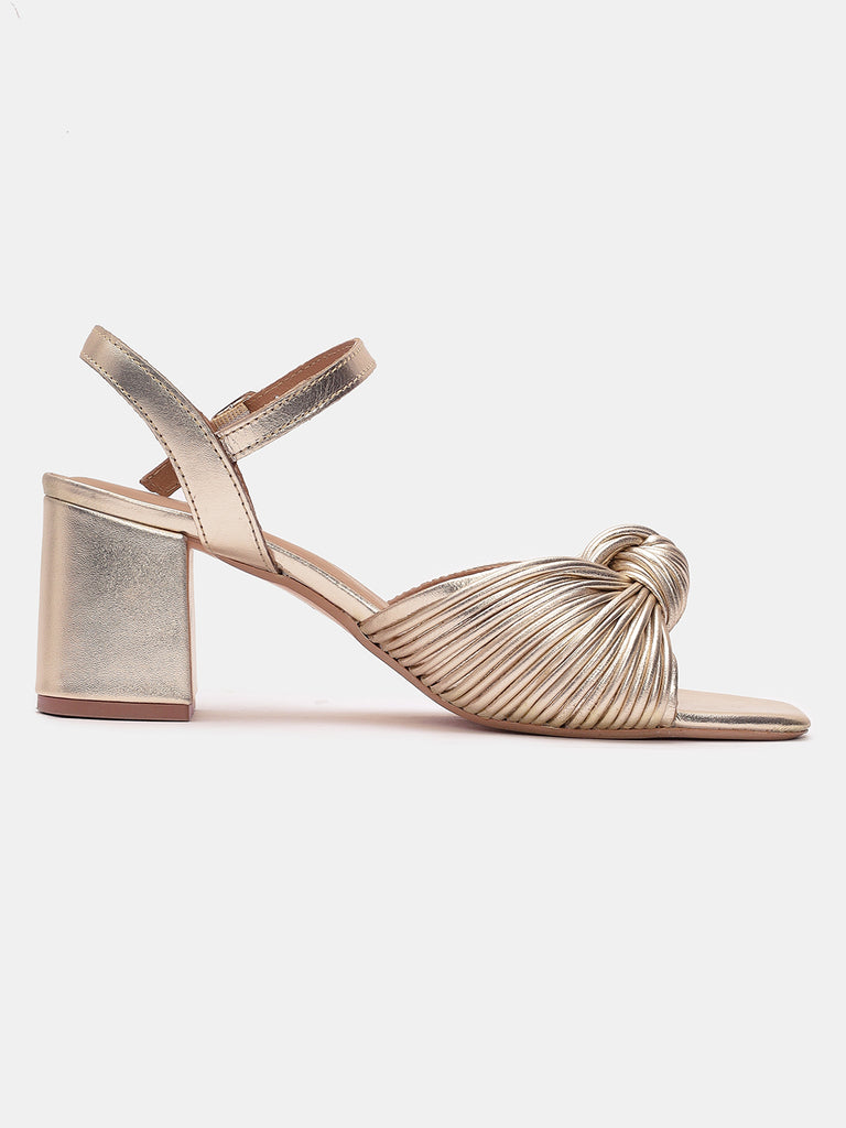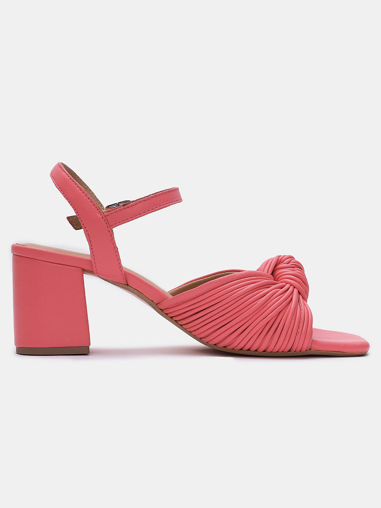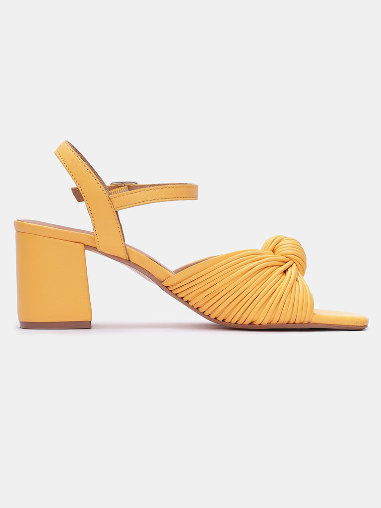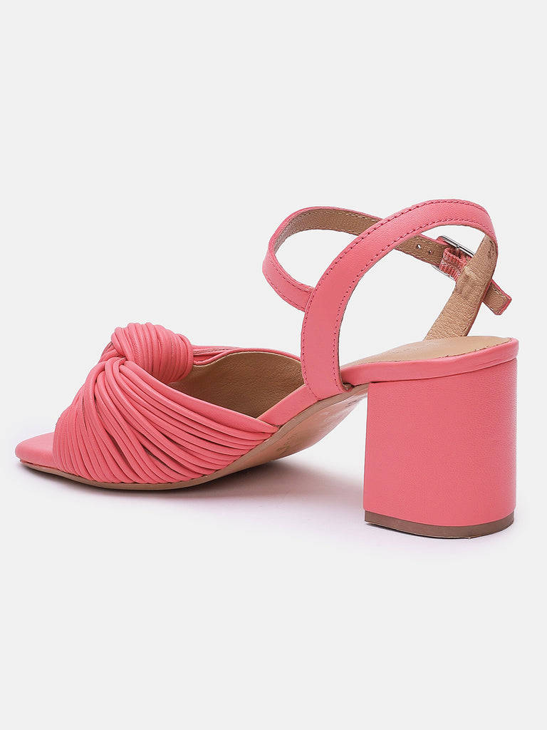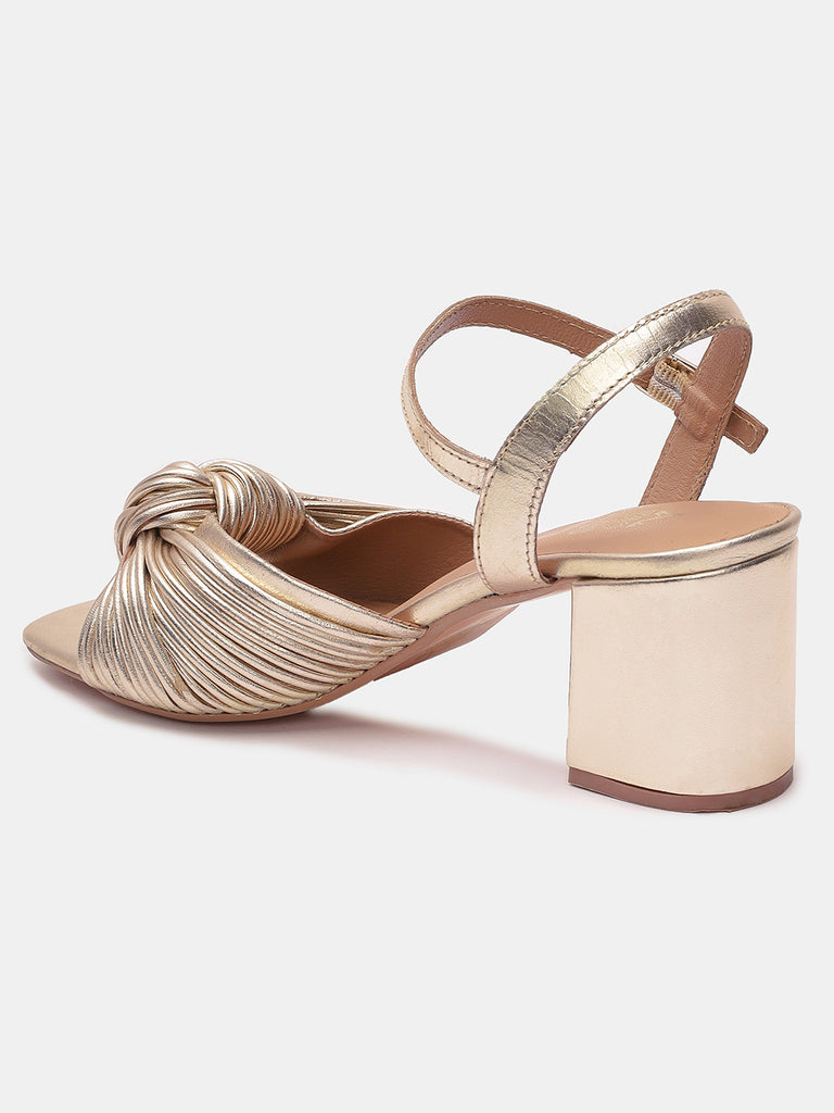 Step into effortless elegance with these block heel sandals, crafted for both style and comfort. The upper features a beautifully ruched leather design with a central knot detail, adding a chic touch to your summer and festive looks. Designed with a genuine leather lining and insole for breathable comfort, and finished with a durable Thunit sole for long-lasting wear. The adjustable ankle strap ensures a secure and flattering fit, making these heels perfect for all-day wear.