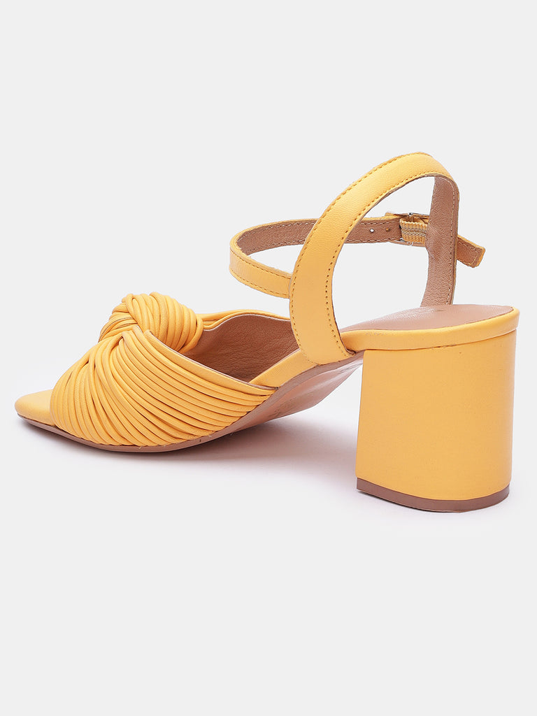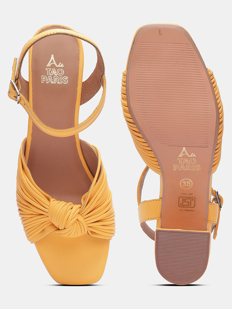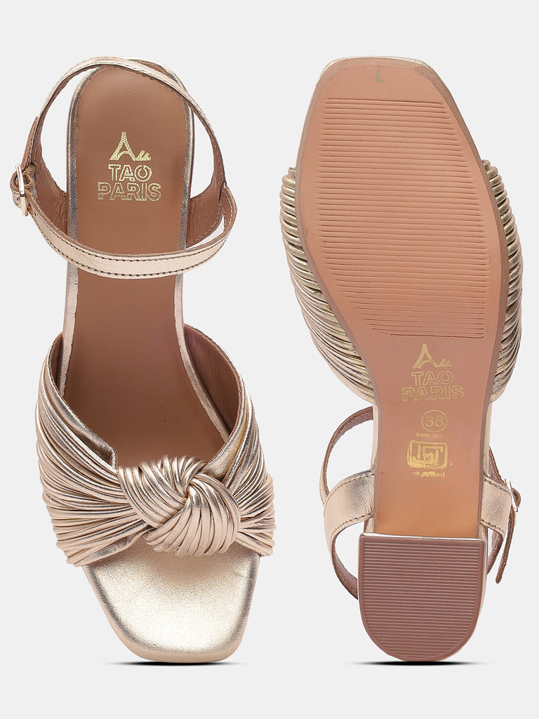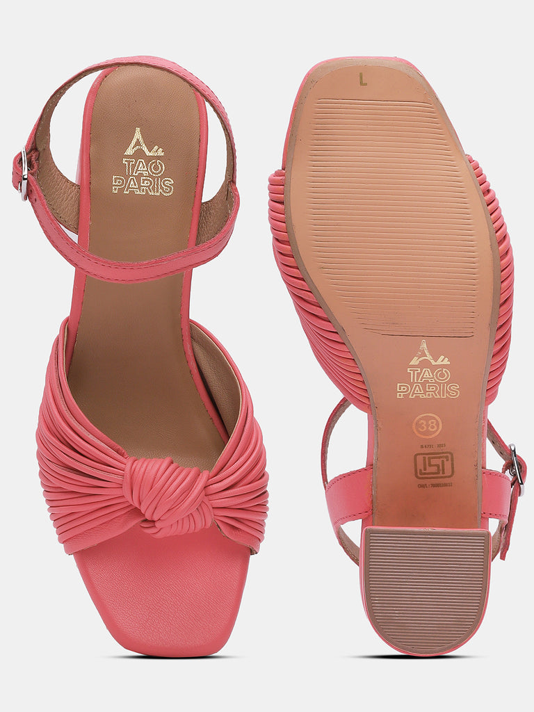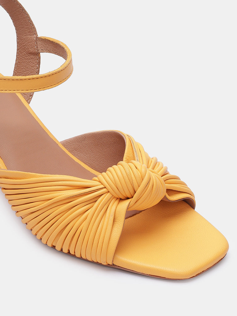 Step into effortless elegance with these block heel sandals, crafted for both style and comfort. The upper features a beautifully ruched leather design with a central knot detail, adding a chic touch to your summer and festive looks. Designed with a genuine leather lining and insole for breathable comfort, and finished with a durable Thunit sole for long-lasting wear. The adjustable ankle strap ensures a secure and flattering fit, making these heels perfect for all-day wear.