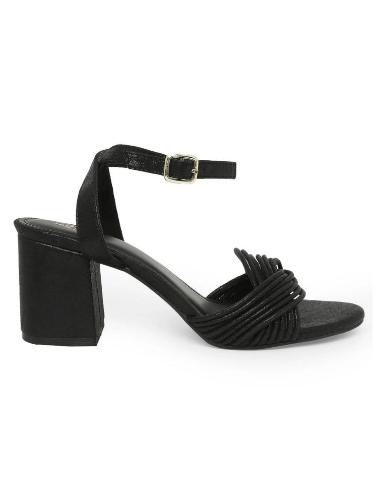 Tao Paris Dot Black Block Heel Slip On Sandals With Ankle Strap