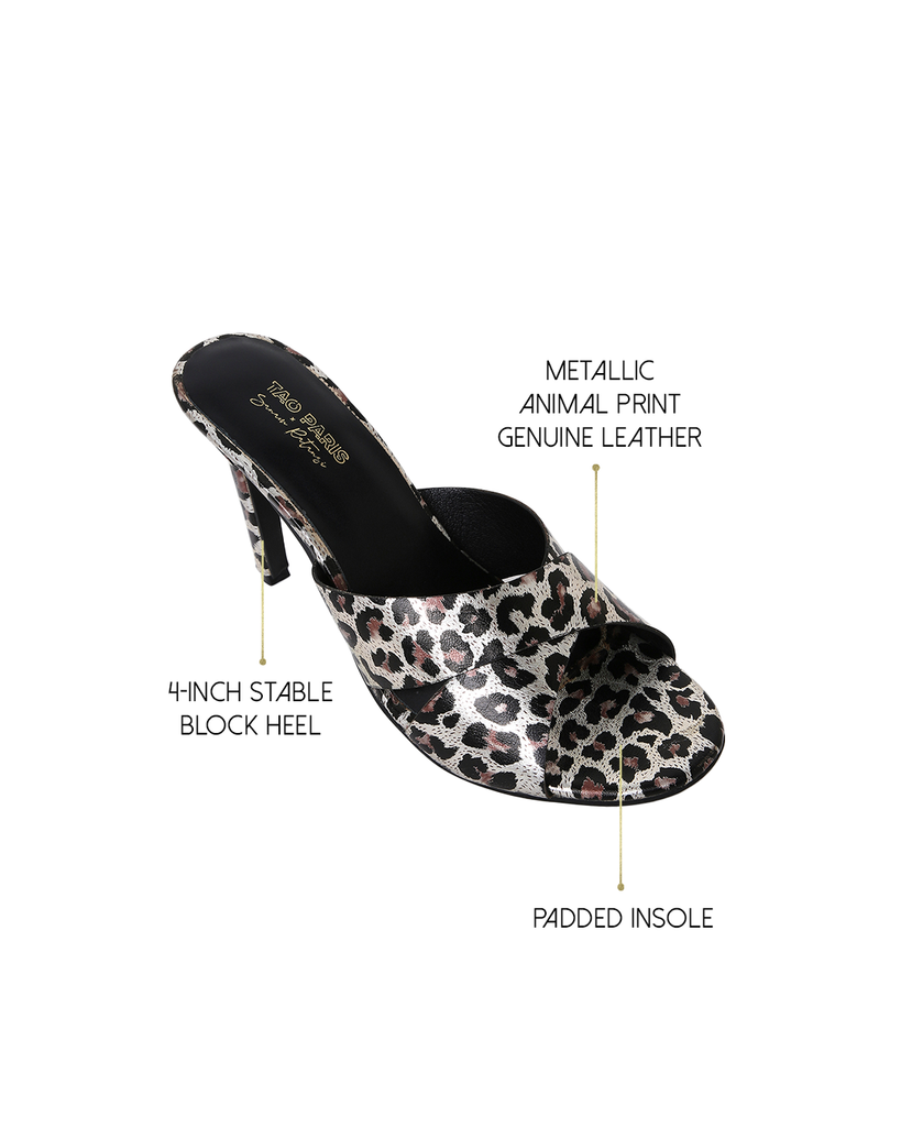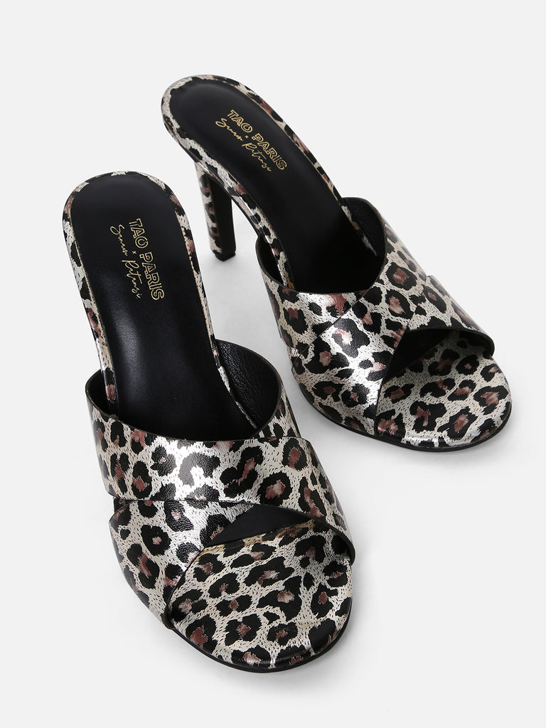 Unleash your inner diva with the Tao Paris Leopard Print Stiletto Mules – the ultimate statement heels for fearless fashionistas. Featuring a fierce animal print on a sleek silhouette, these open-toe mules are designed to command attention. The slim stiletto heel and slip-on design make them the perfect pair for effortless glam on the go.