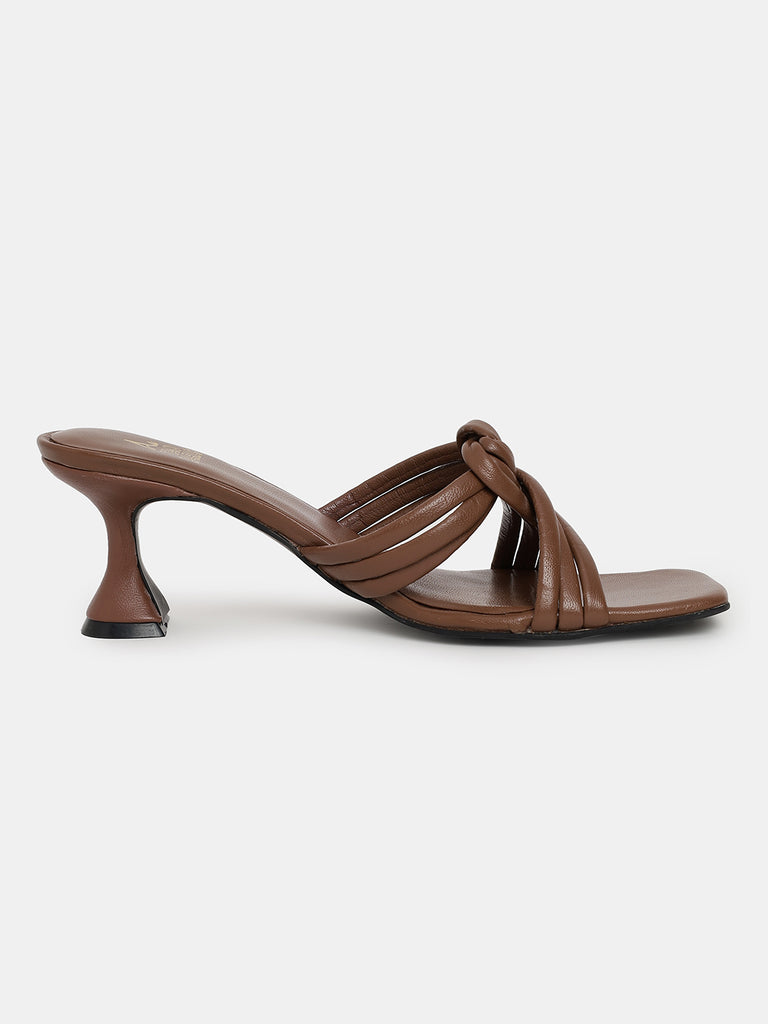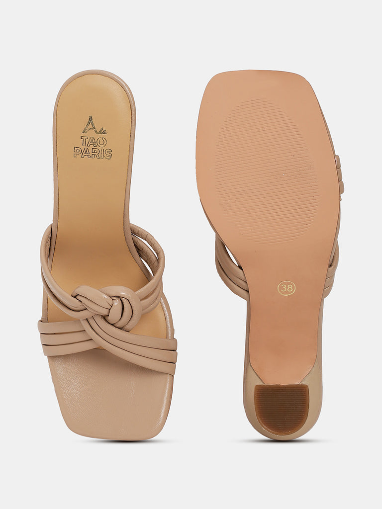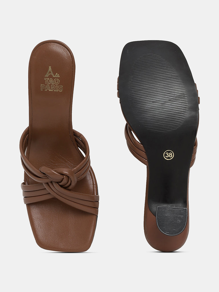 Tao Paris Women Coffee Beige Heel Slip On Sandals