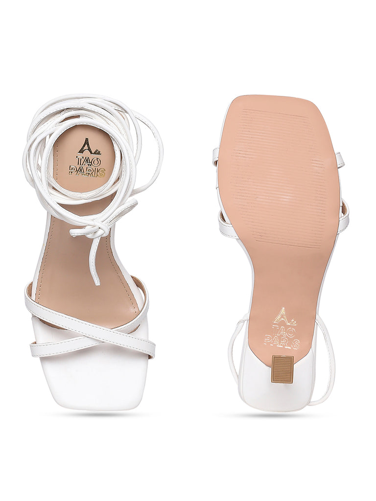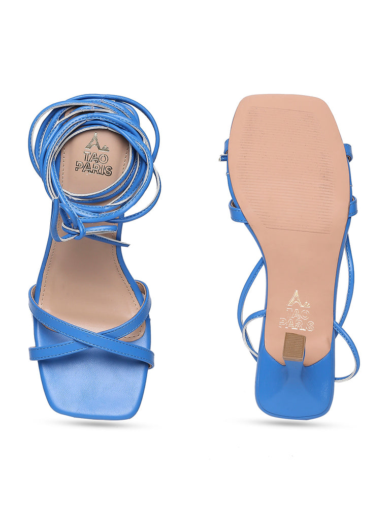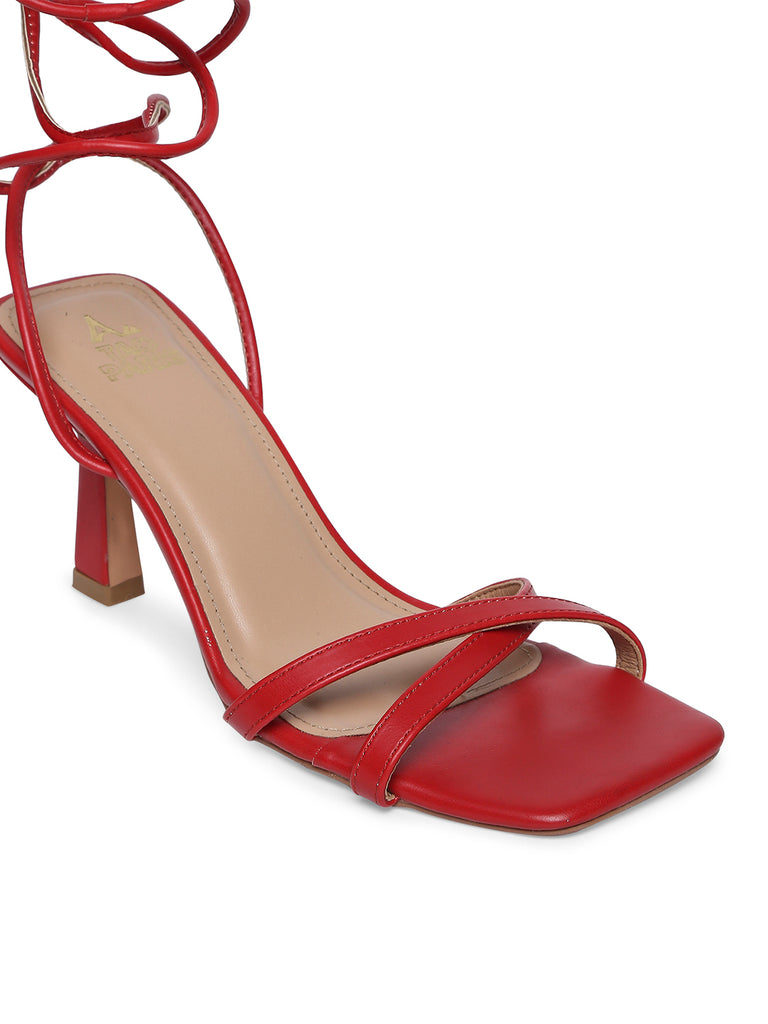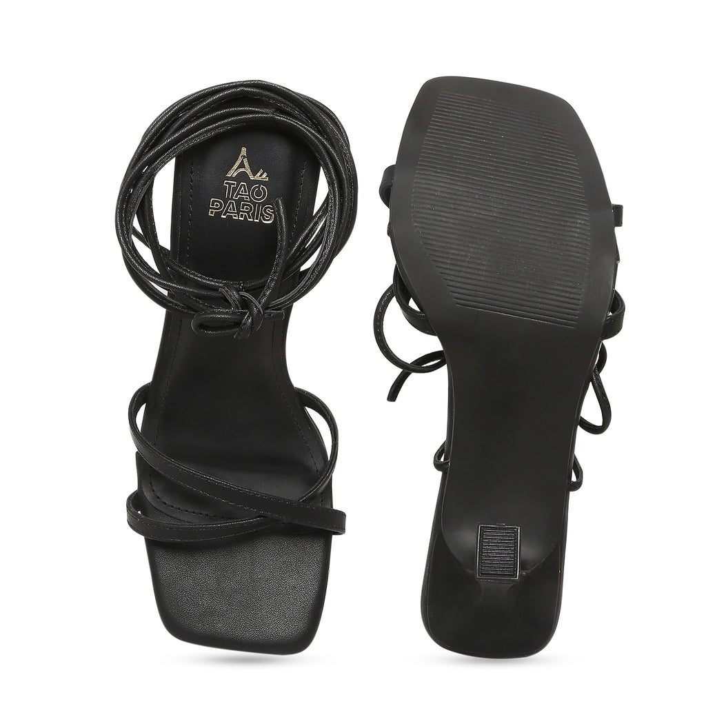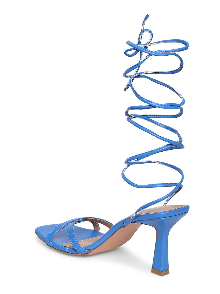 Tessa, The gorgeous pair that amalgamates our two favorite footwear trends of all time- stilettoes and long wrap-around ankle straps; the Tessa are classic heels that you need in your life! Accentuated with a square-toed front, this pair is best worn with Short dresses and capris.