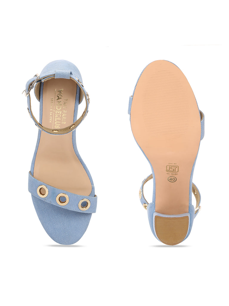 Shine in style with our Blue Soft Denim Footwear, featuring eyelet detailing and an adjustable ankle strap. The comfortable block heel and soft cushioned padded insole ensure ease throughout the day, backed by a 3-month warranty. Designed by celebrity fashion designer Seema K Sajdeh, this collection offers a perfect blend of luxury and practicality.
