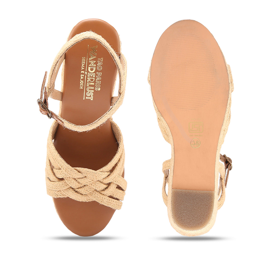 Step into summer with our Natural Jute Footwear, featuring a breathable, no-sweat leather insock and an adjustable strap for a perfect fit. The handmade jute-covered wedge adds an eco-friendly touch of elegance. Designed by celebrity fashion designer Seema K Sajdeh, this collection ensures both style and comfort, backed by a 3-month warranty for lasting quality.