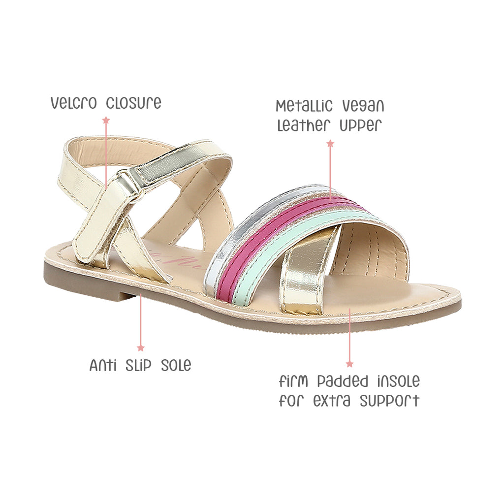 Our rainbow straps sandals are perfect for girls who enjoy days of sunshine, rainbows, and a lot of fun.The anti-slip sole and Velcro on this pair are set to keep your little girl’s feet cozy and colorful all day long.