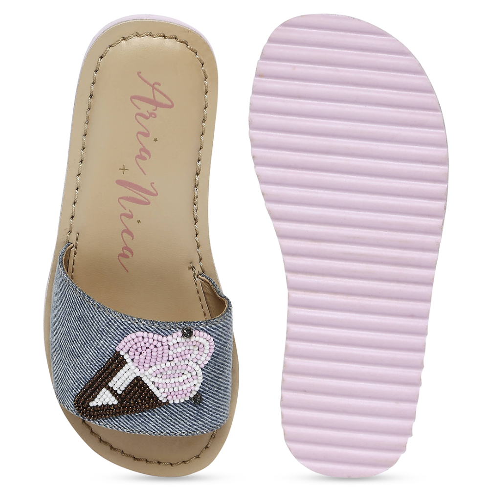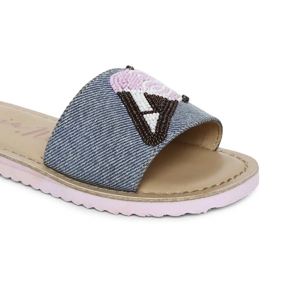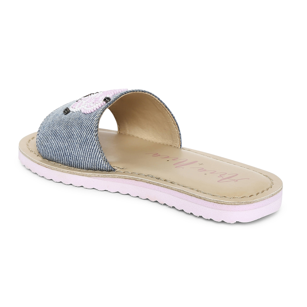 Because every little thing she does is magic, she deserves some embroidered softie on her feet all day long. Being constructed with Denim/PU and a Pink padded sole, our Softie flats are not only perfectly comfy but also a happiness booster for every child.