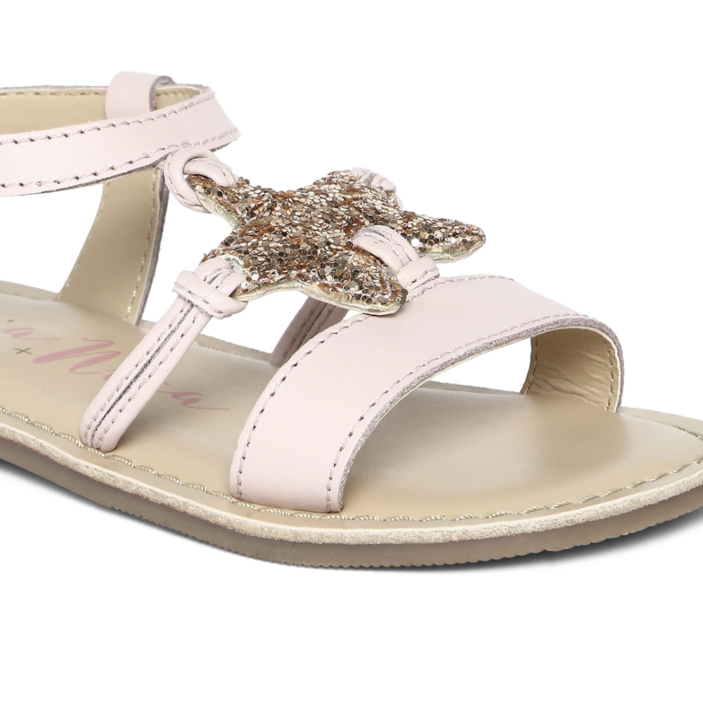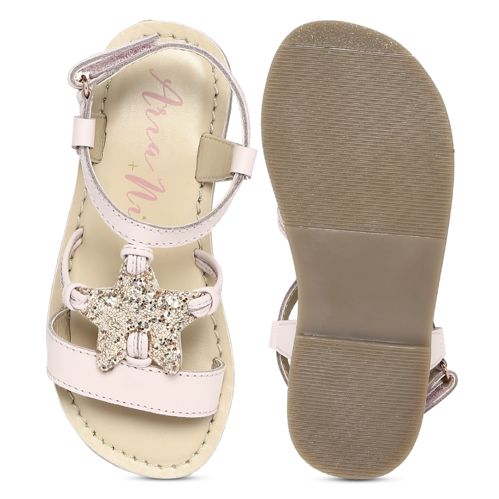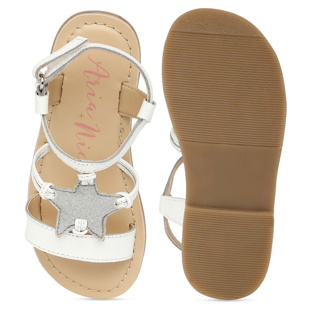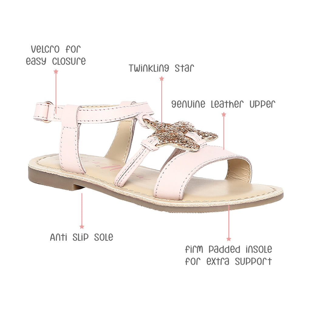 Hey Kids! We’ve got your sandals… You don’t have to visit wonderland to find this boldly embellished retro-chic meets fantasy pair. It’s also available in Glittery Star Rose Gold with Pink & Glittery Star Silver with White Upper.