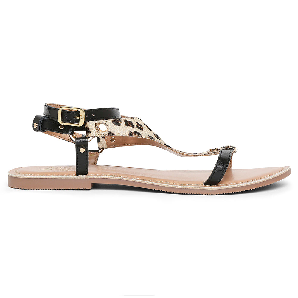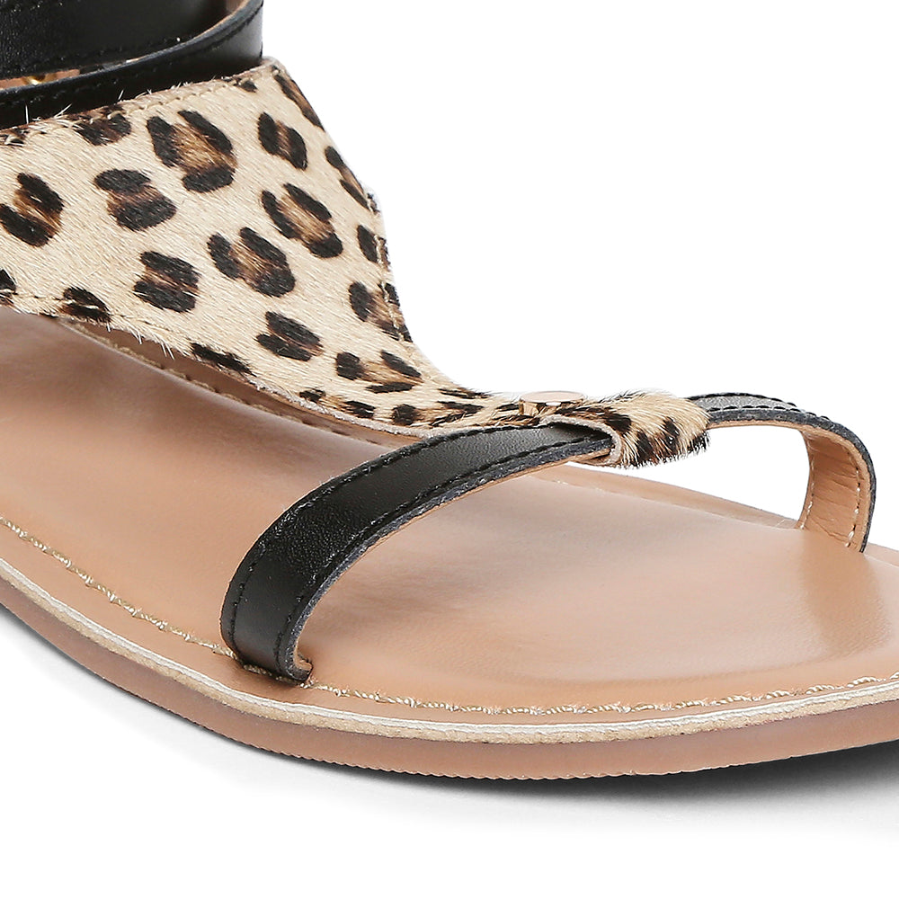 Trend listings of the 2020 would be incomplete without the mention of Animal Prints that took the world by storm (again) recently. The Audrey pair is a proud specimen of this very trend. Thin black straps that are accompanied by a single wide strap with a leopard print on it, form the main design elements of this trendy pair of gladiators.