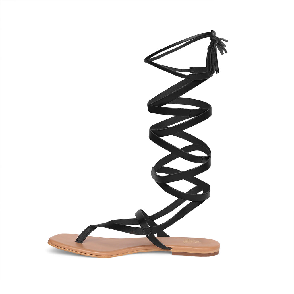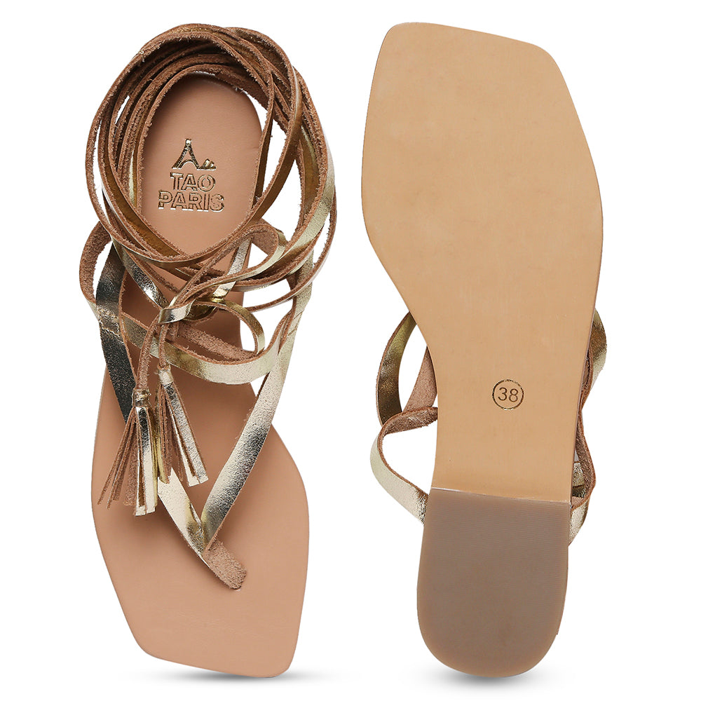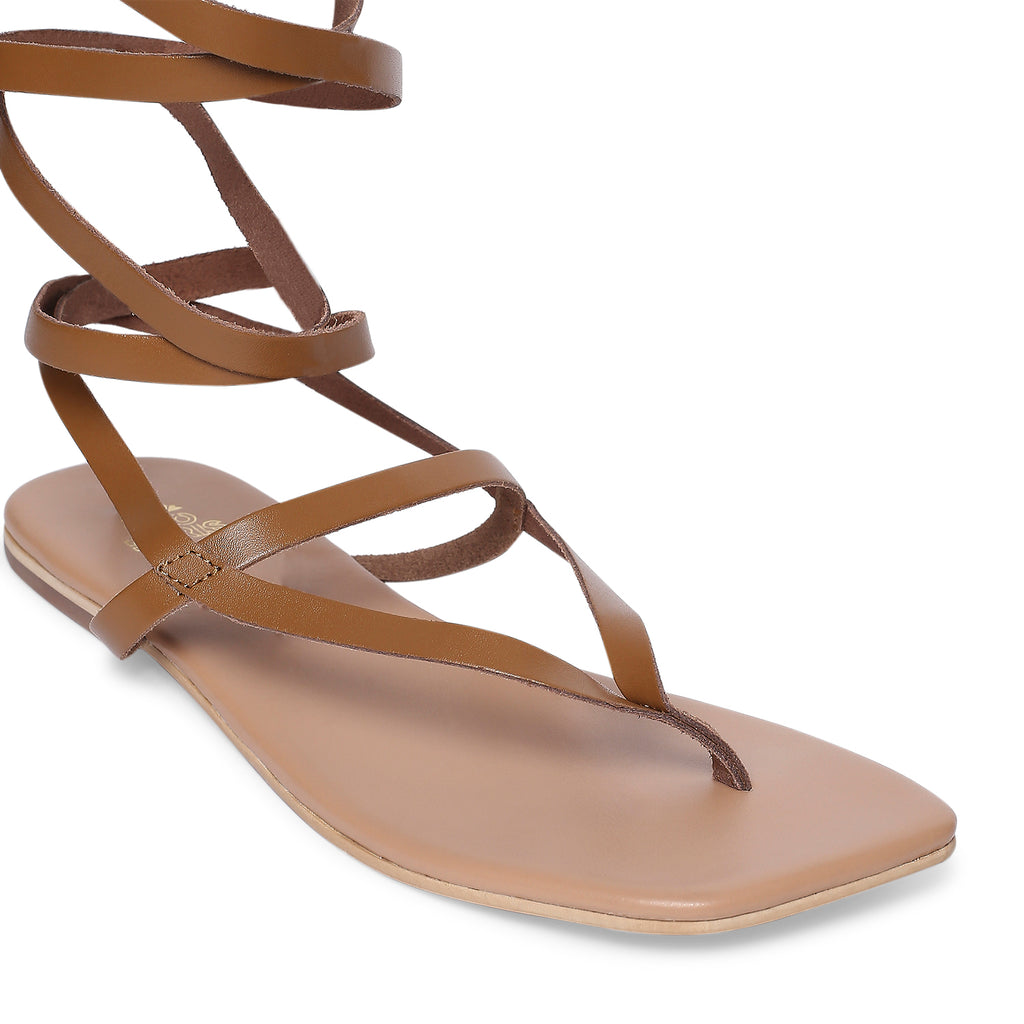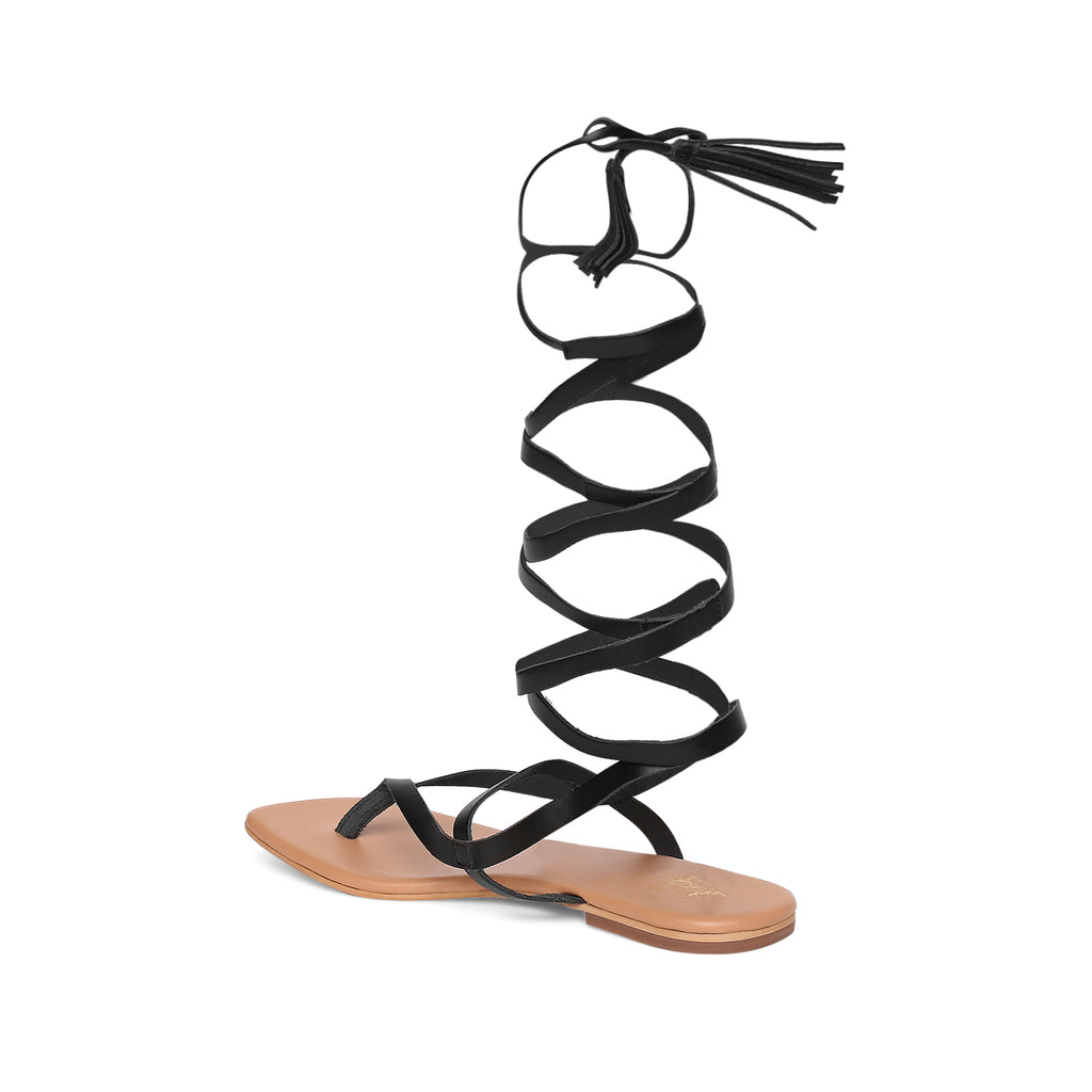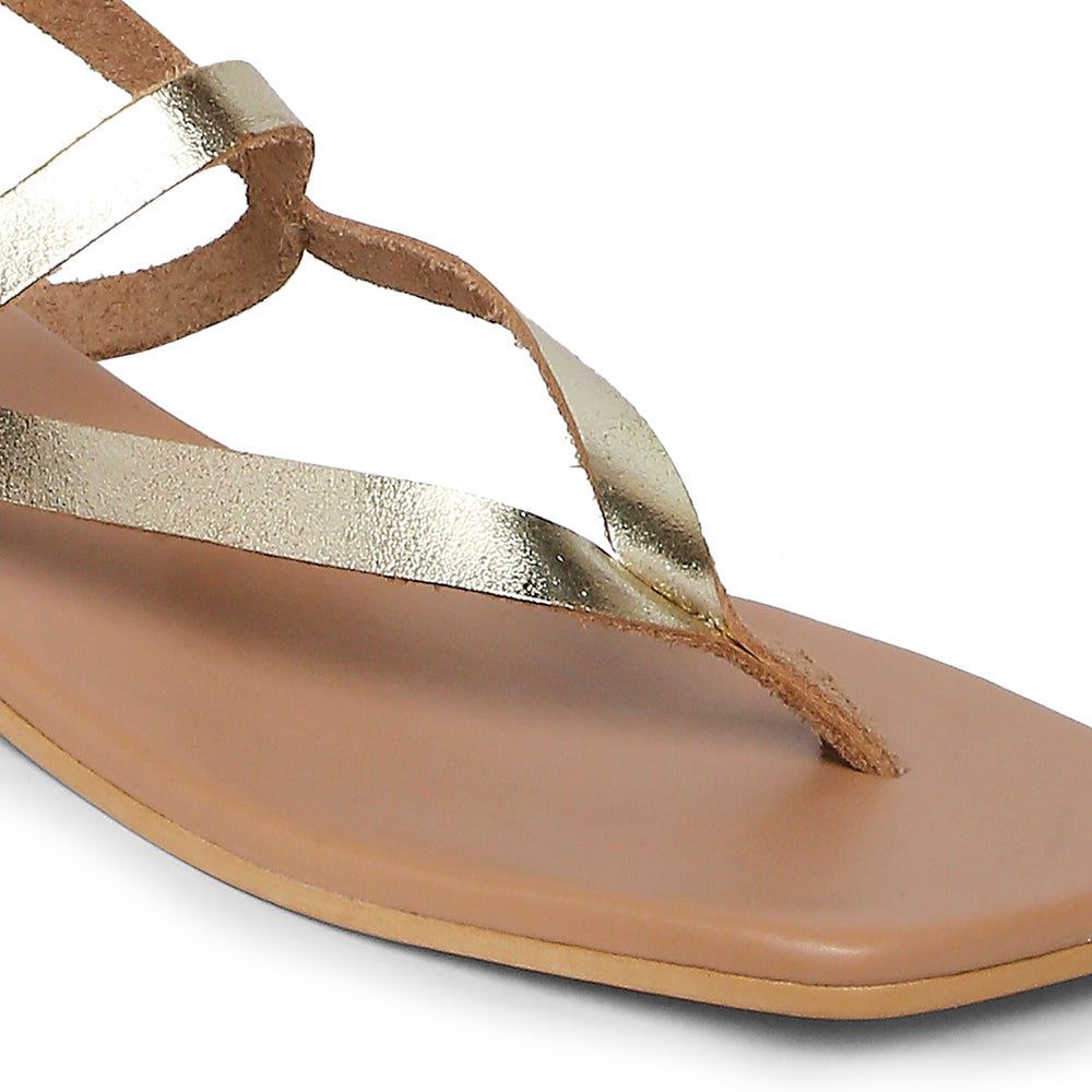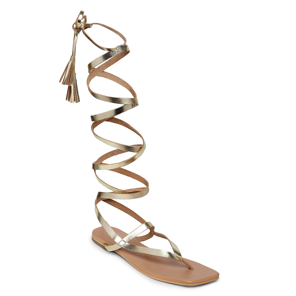 gladiators. Crafted to provide impeccable comfort, the pair has thin silver straps forming a ‘V’ over the foot that are further extended to form the ankle tie-ups
